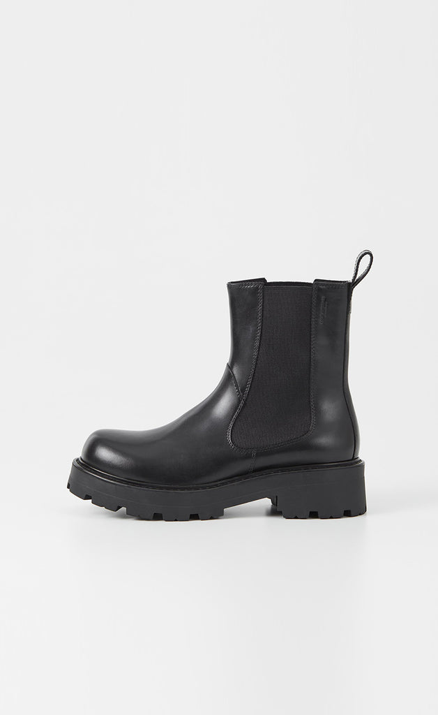 Cosmo 2.0 frá Vagabond eru klassískir ökklaskór úr leðri með teygjum á báðum hliðum og chunky 4,5 cm þykkum sóla og hæl.