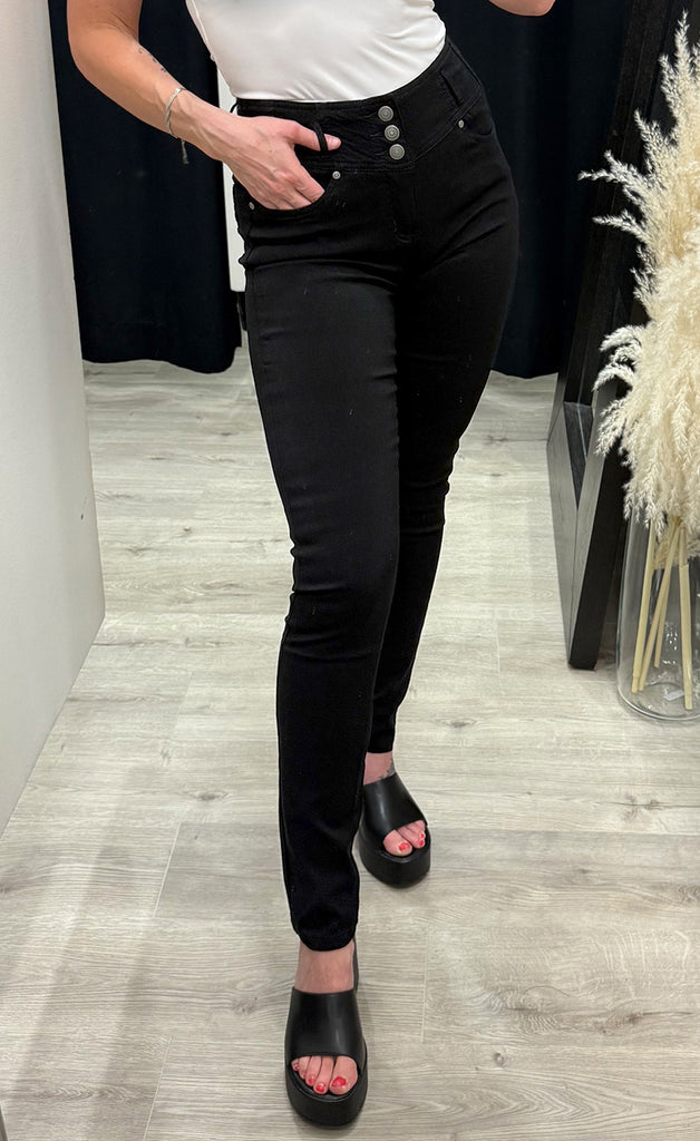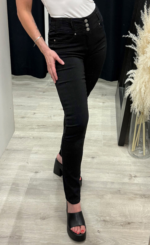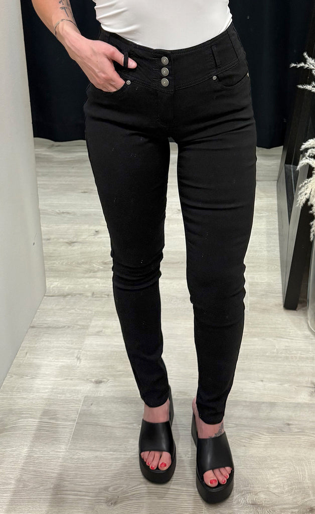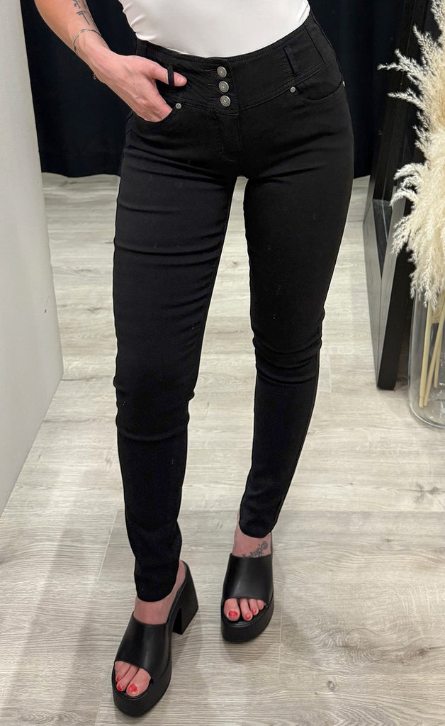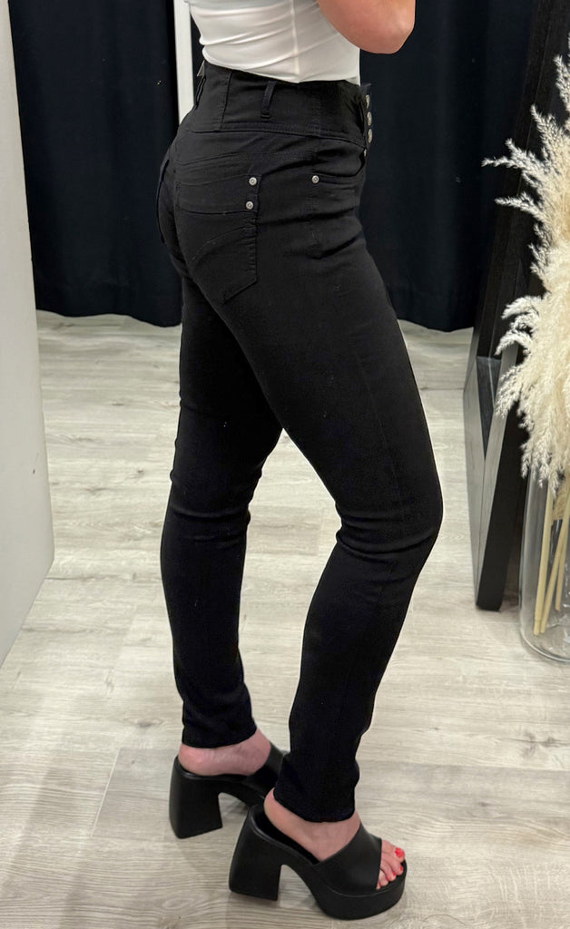 Buxurnar eru úr mjúku og teygjanlegu efni, háar upp og þröngar niður.