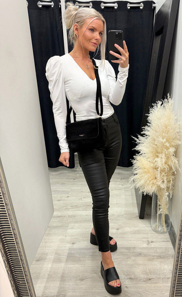 Ótrúlega falleg taska úr flottu rúskinlíki. Taskan er með einu stóru hólfi og minni hólfum að frama og aftan. -Töskuólina er hægt að bæði lengja og stytta
