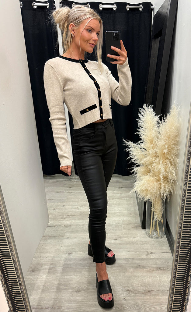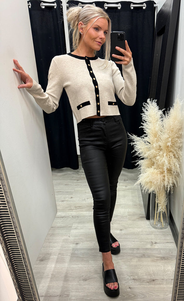 Ótrúlega falleg peysa frá danska merkinu Bruuns Bazaar. Peysan er úr mjúku og teygjanlegu efni og hneppt niður með gylltum tölum. -Módel notar stærð 36/38 og er 168 cm á hæð og er í stærð XS