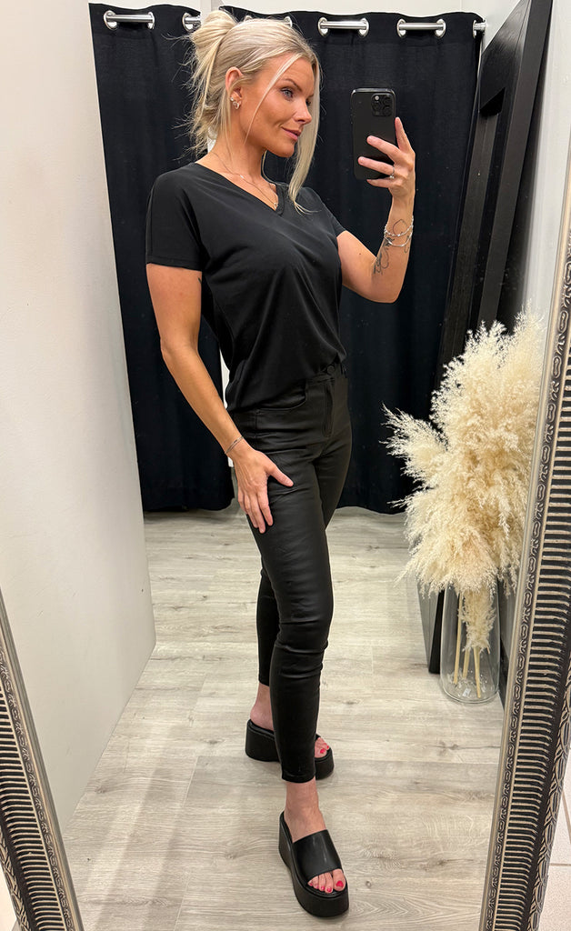 Bolurinn er úr mjúku og teygjanlegu efni og með v-hálsmáli.
