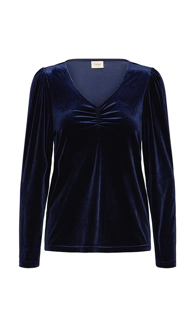 Blússan er úr mjúku og teygjanlegu velour efni.