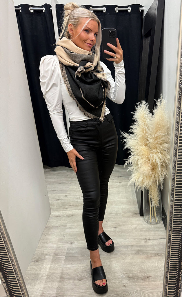 Ótrúlega fallegur klútur úr mjúku og hlýju efni.Efni: 50% viscose, 30% wool og 20% cashmere