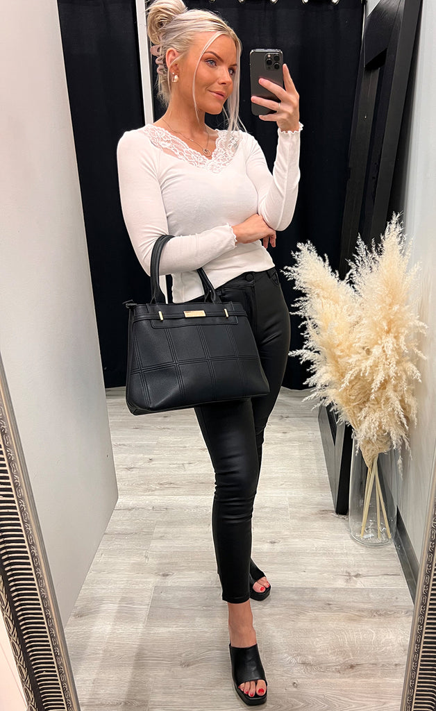 Ótrúlega falleg taska úr flottu leðurlíki efni.Taskan er með tveimur stórum hólfum og axlaról fylgir með.