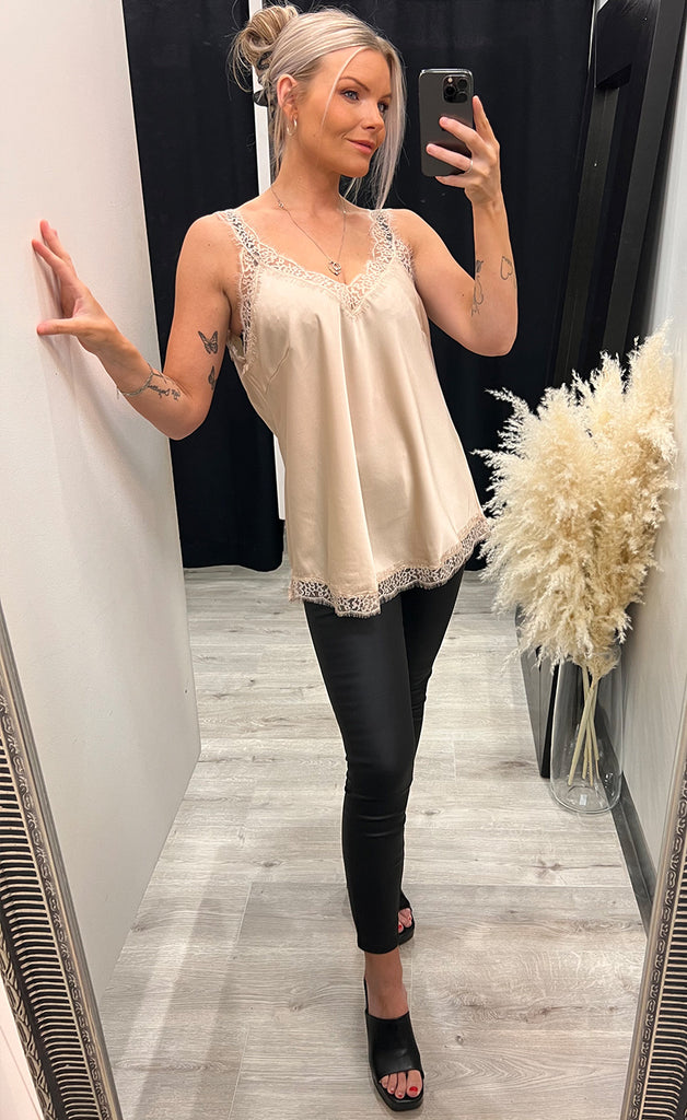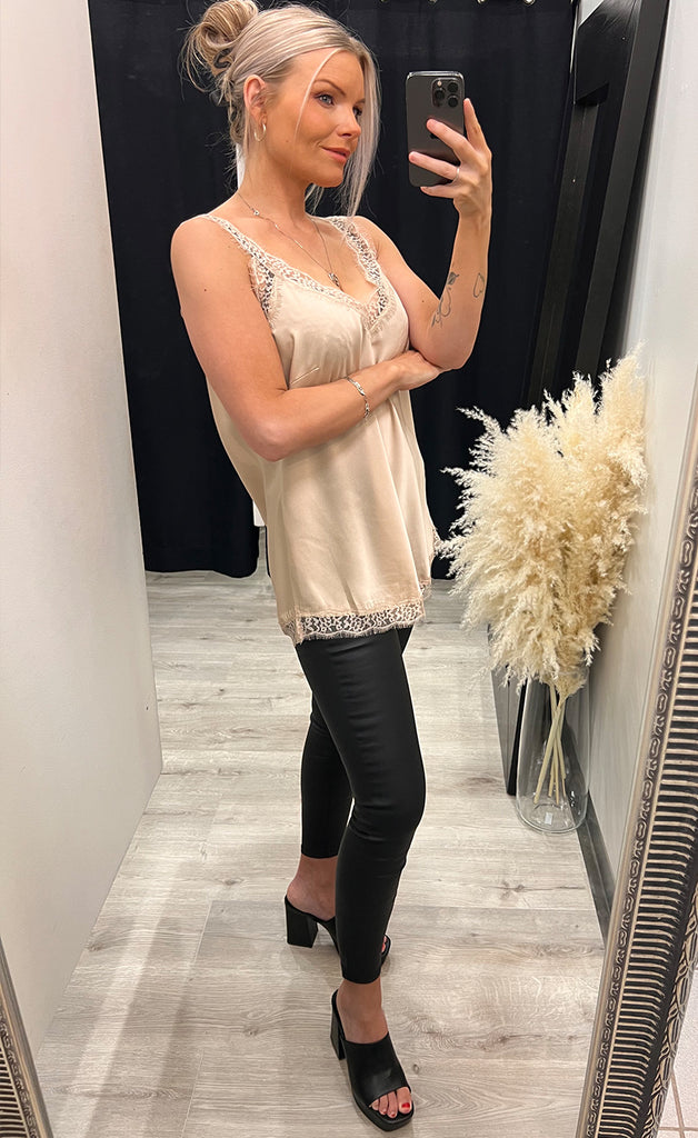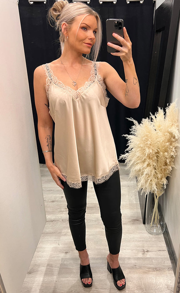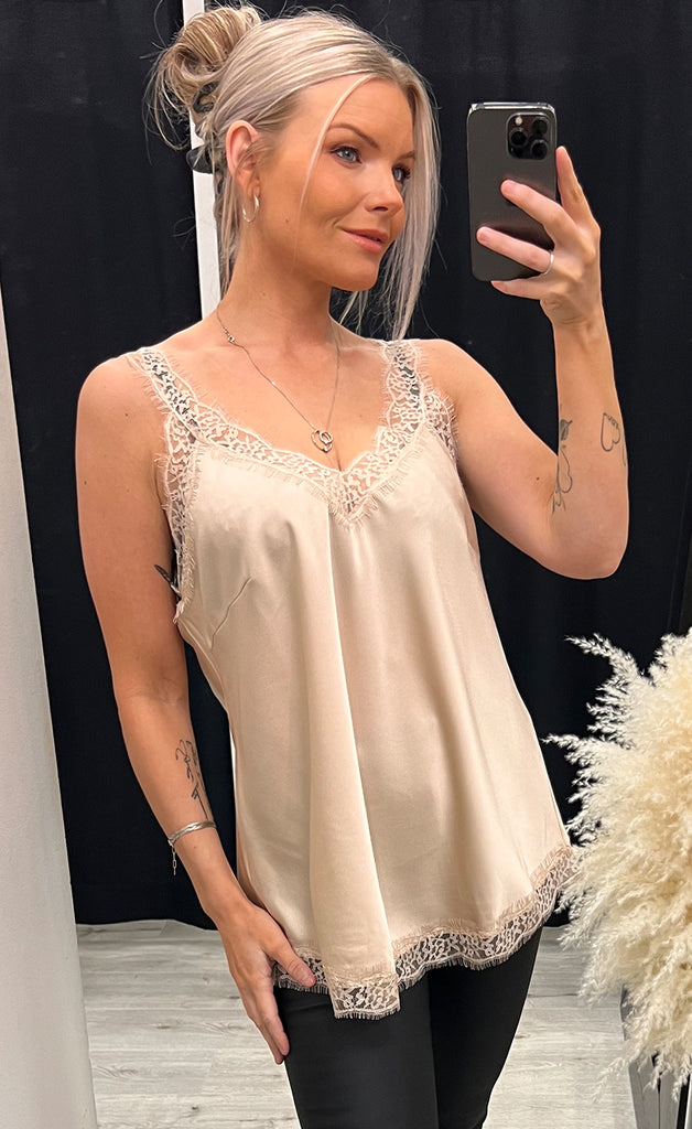 Ótrúlega flottur satín bolur, eftir flottur undir kimono eða blazer.