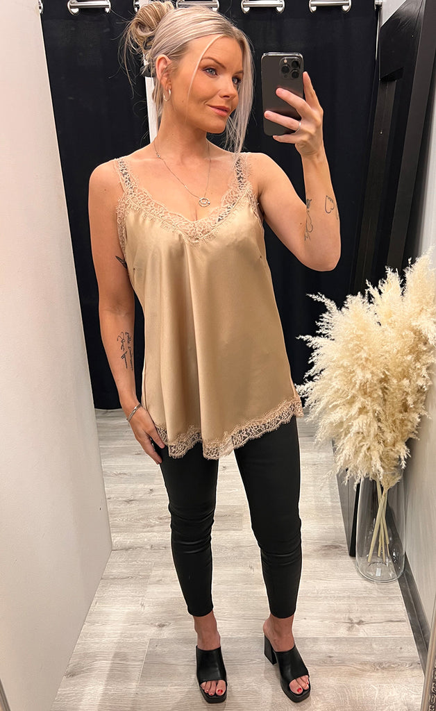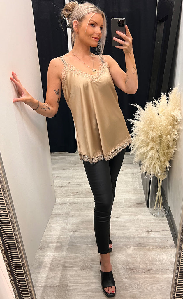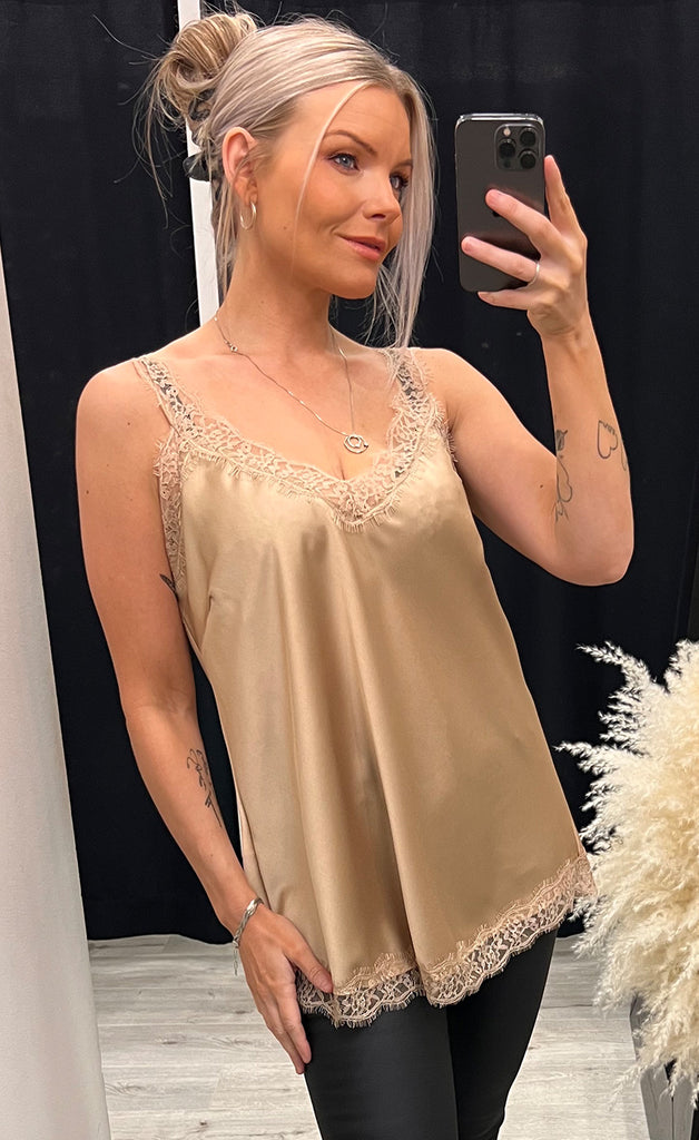 Ótrúlega flottur satín bolur, eftir flottur undir kimono eða blazer.