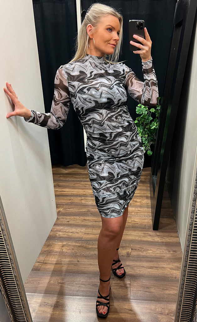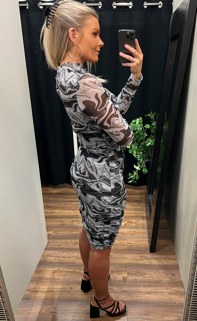 Ótrúlega flottur mesh kjóll með rykkingu í hliðum.