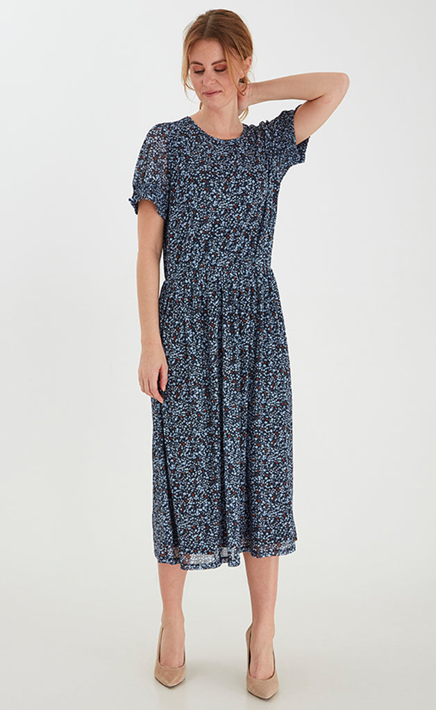 Ótrúlega sætur mesh kjóll frá danska merkinu Fransa. Kjóllinn er úr mjúku teygjanlegu efni með teygju í mittið. -Fóðraður -Módel notar stærð 40 og er í stærð M í kjólnum