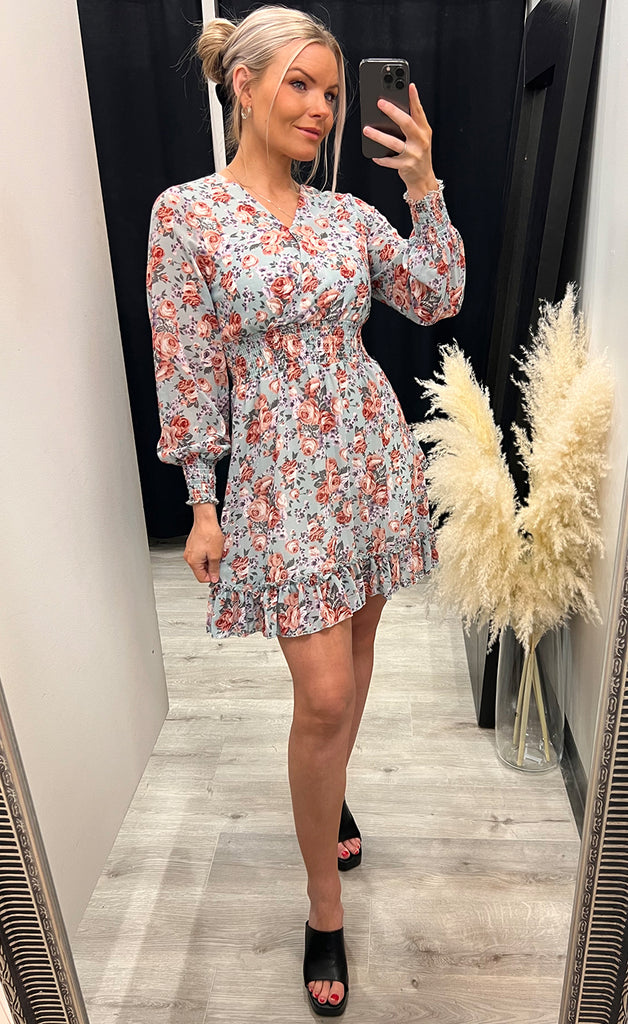 Ótrúlega fallegur siffon kjóll með teygju í mittið og pífu að neðan.