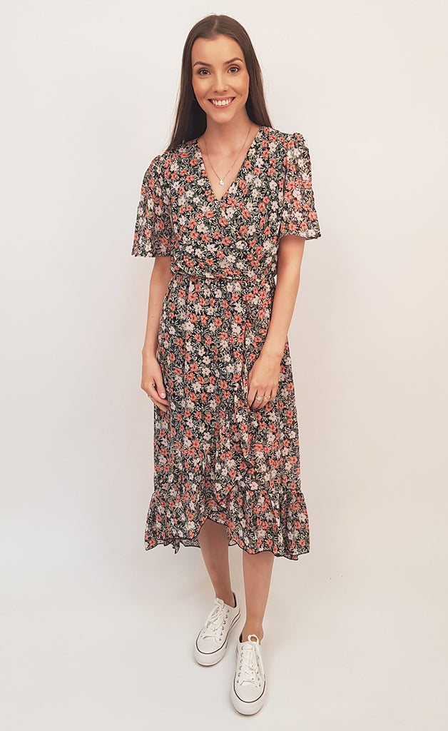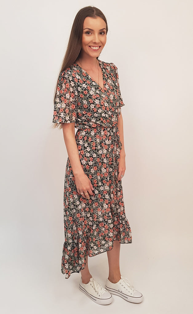 Ekta flottur sumarkjóll úr siffoni V-hálsmáli