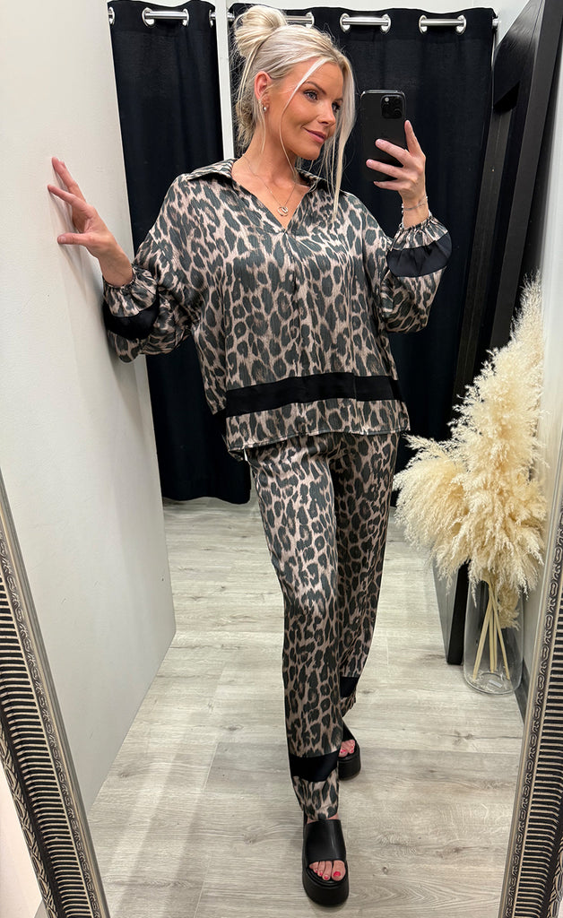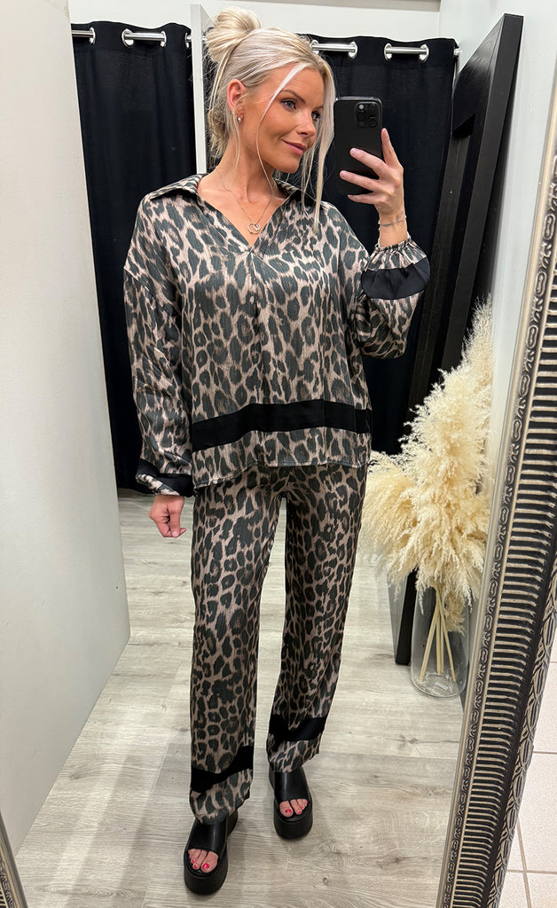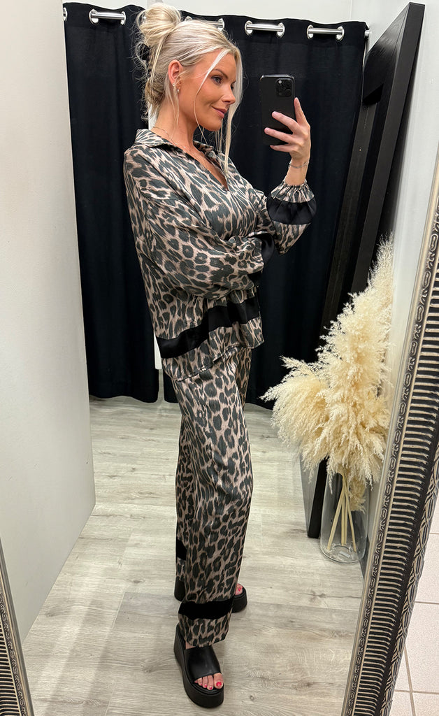 Ótrúlega falleg blússa frá danska merkinu NÜ. Blússan er úr flottu satín efni, með kraga og laus í sniði. -Módel notar stærð 36/38 og er 168 cm á hæð og er í stærð S