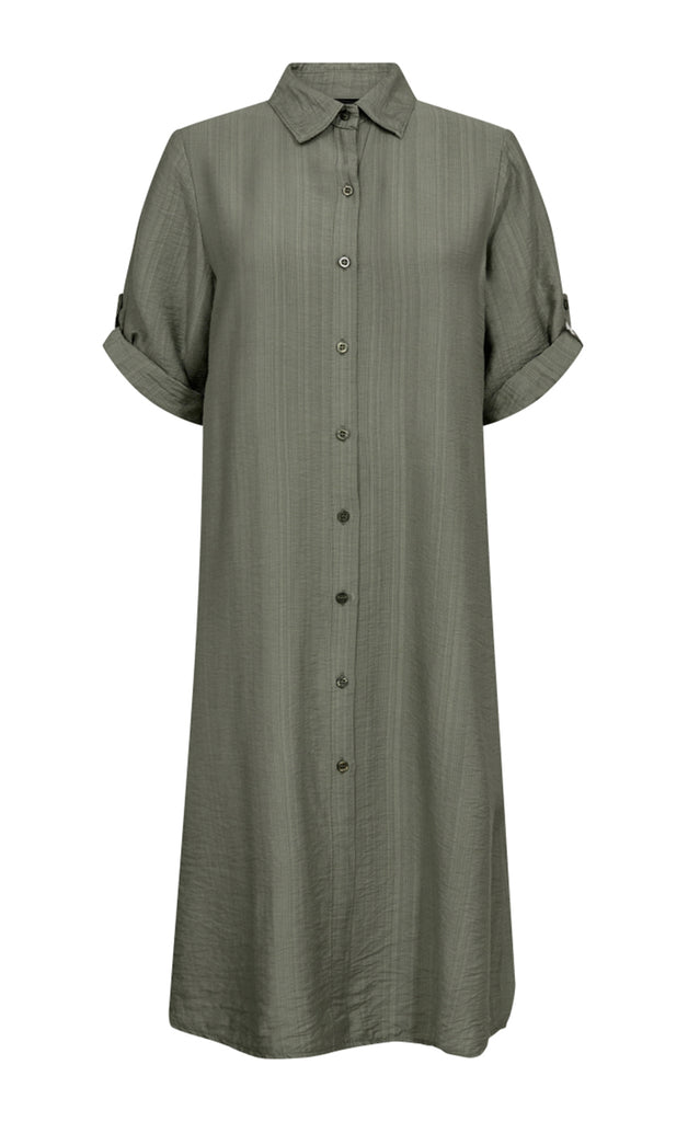 Ótrúlega fallegur kjóll frá danska merkinu Nü. Kjóllinn er úr mjúku efni, með kraga og hnepptur niður. -Módel notar stærð 36/38 og er 168 cm á hæð og er í stærð S