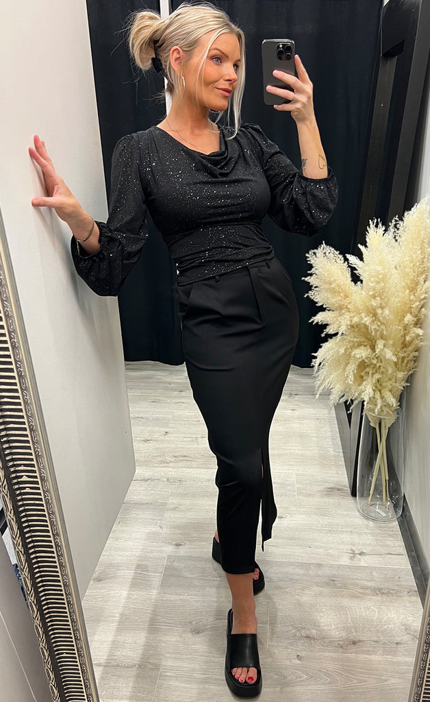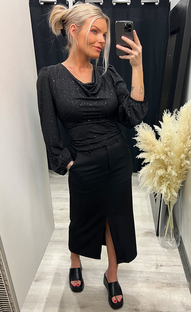 Ótrúlega flottur toppur frá danska merkinu Sisters Point. Toppurinn er með lausu hálsmáli og úr teygjanlegu efni. -Módel notar stærð 36/38 og er í stærð XS