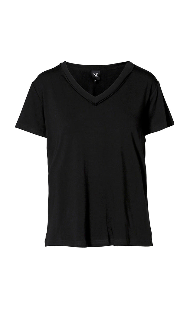 Ótrúlega flottur bolur frá danska merkinu NÜ. Bolurinn er úr mjúku og teygjanlegu efni og með v-hálsmáli. -Módel notar stærð 36/38 og er 168 cm á hæð og er í stærð S