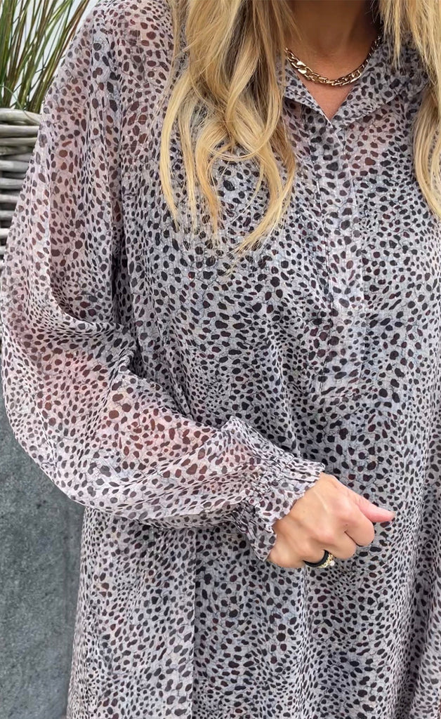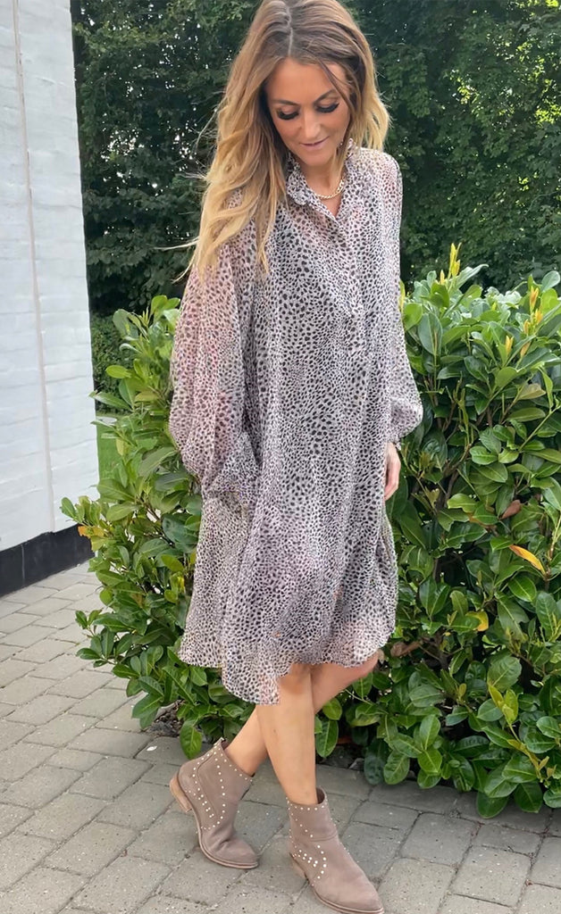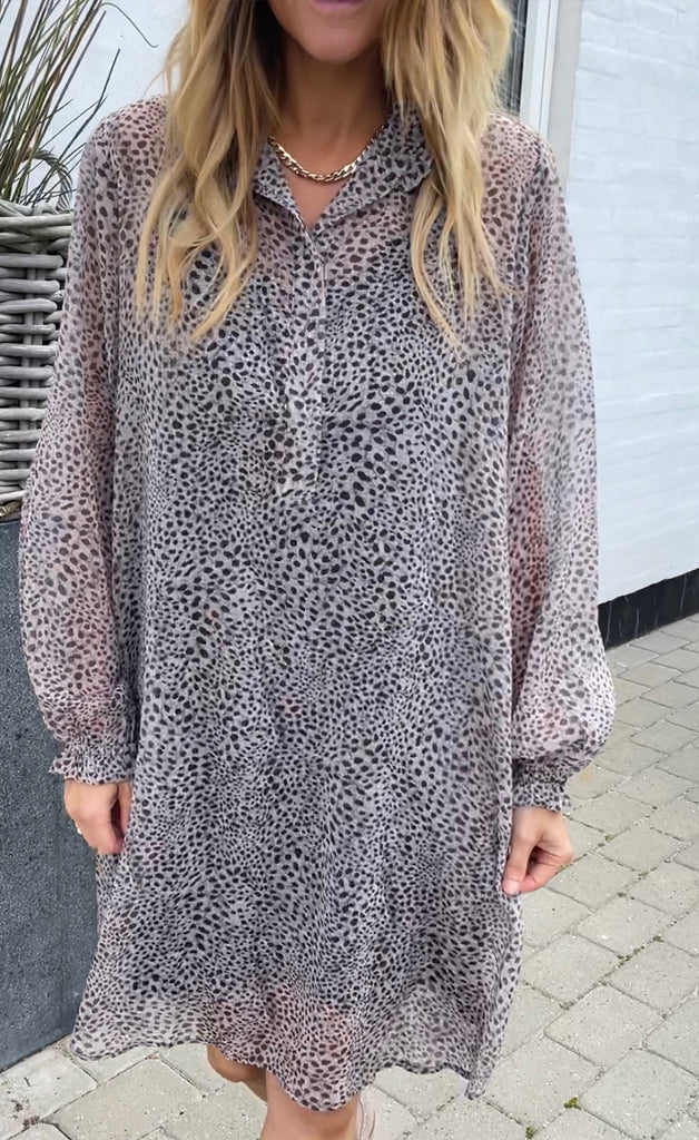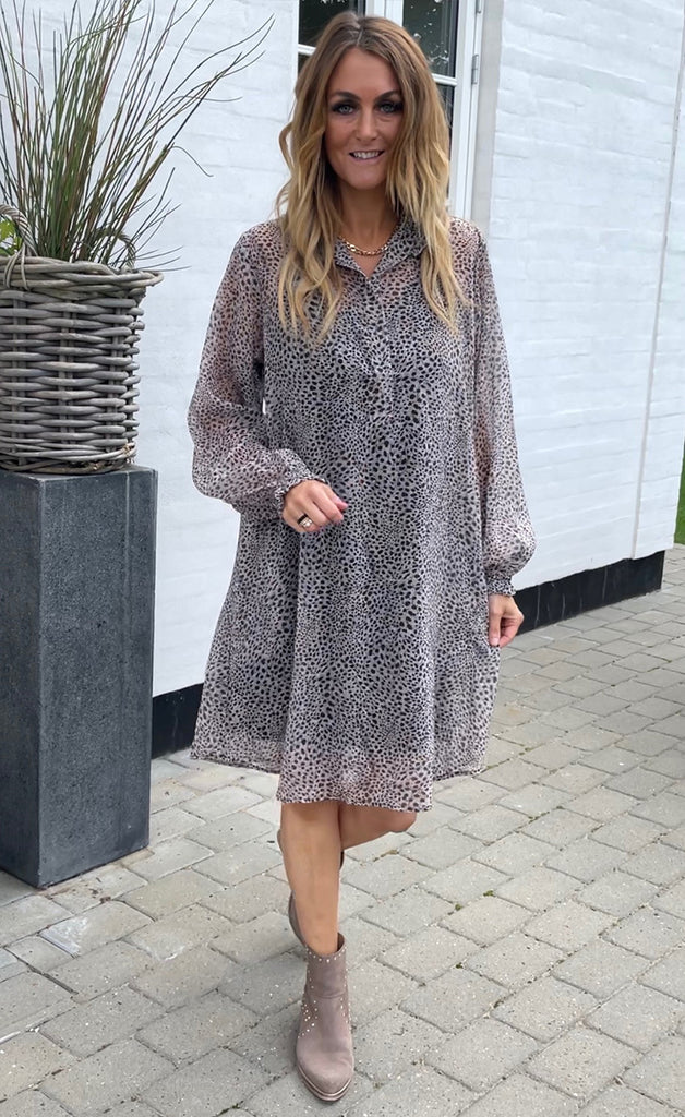 Ótrúlega fallegur kjóll frá danska merkinu Prepair. Kjóllinn er laus í sniði, hnepptur að ofan, með vösum og með teygju á ermum. -Undirkjóll fylgir með