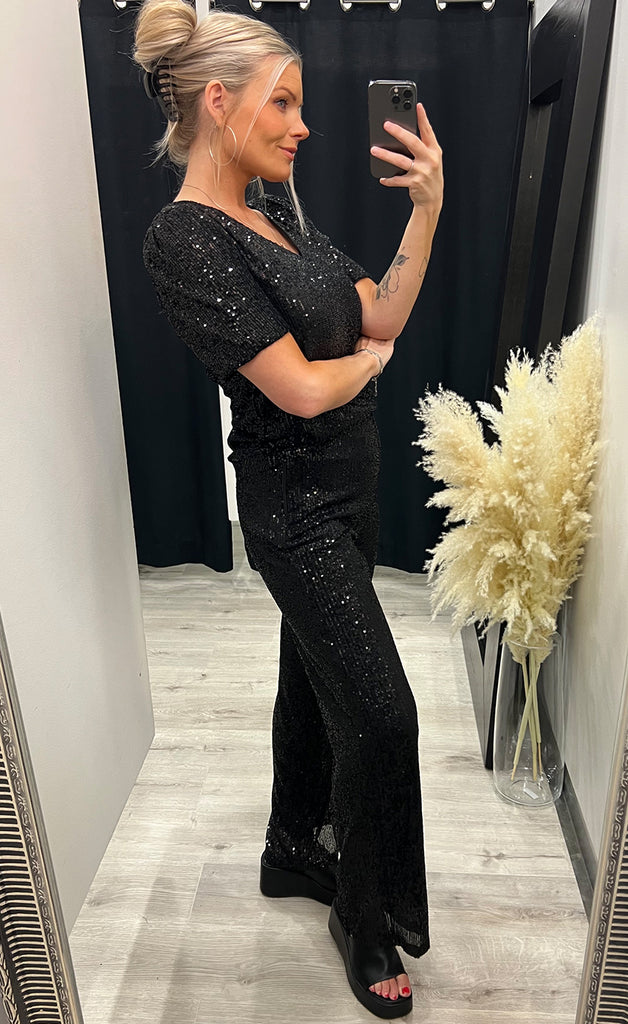 Buxurnar eru beinar niður, úr teygjanlegu efni og með rennilás í hlið.