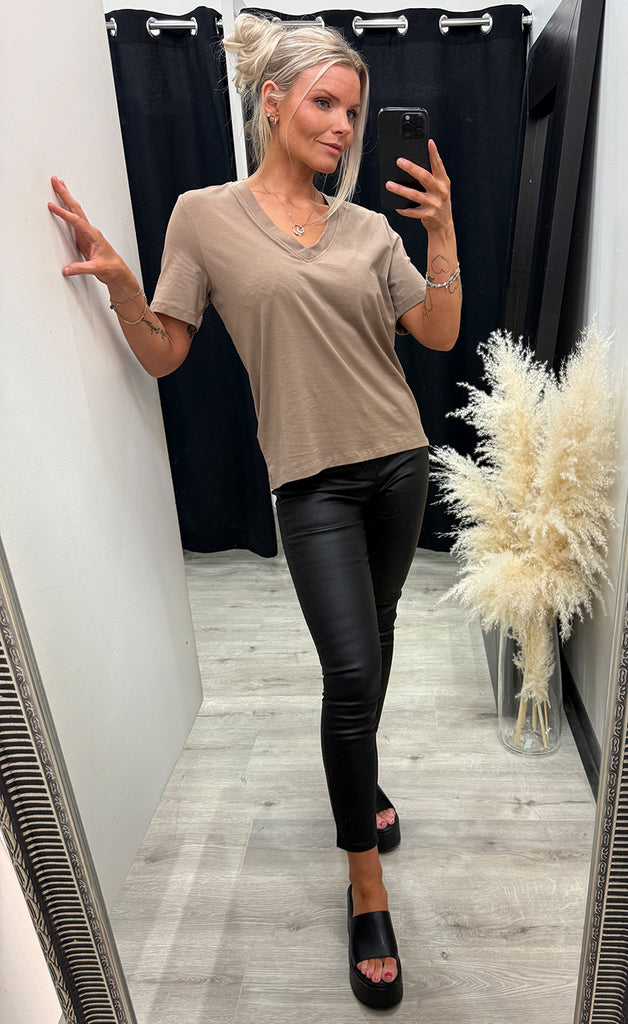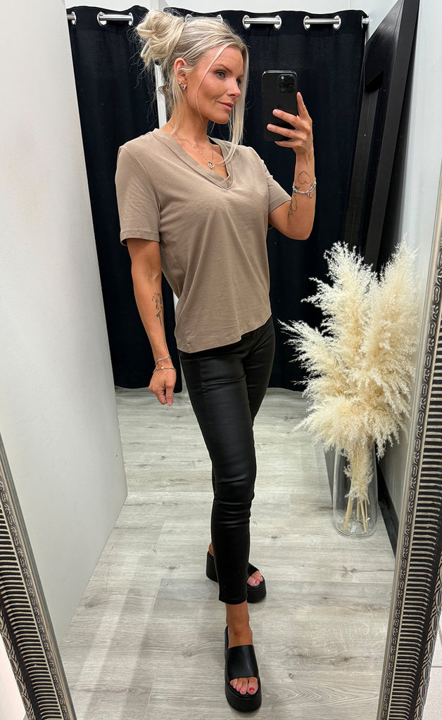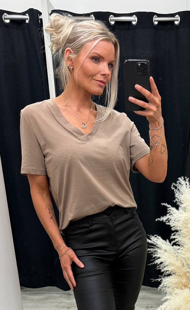 Bolurinn er úr mjúku og teygjanlegu efni og með v-hálsmáli.