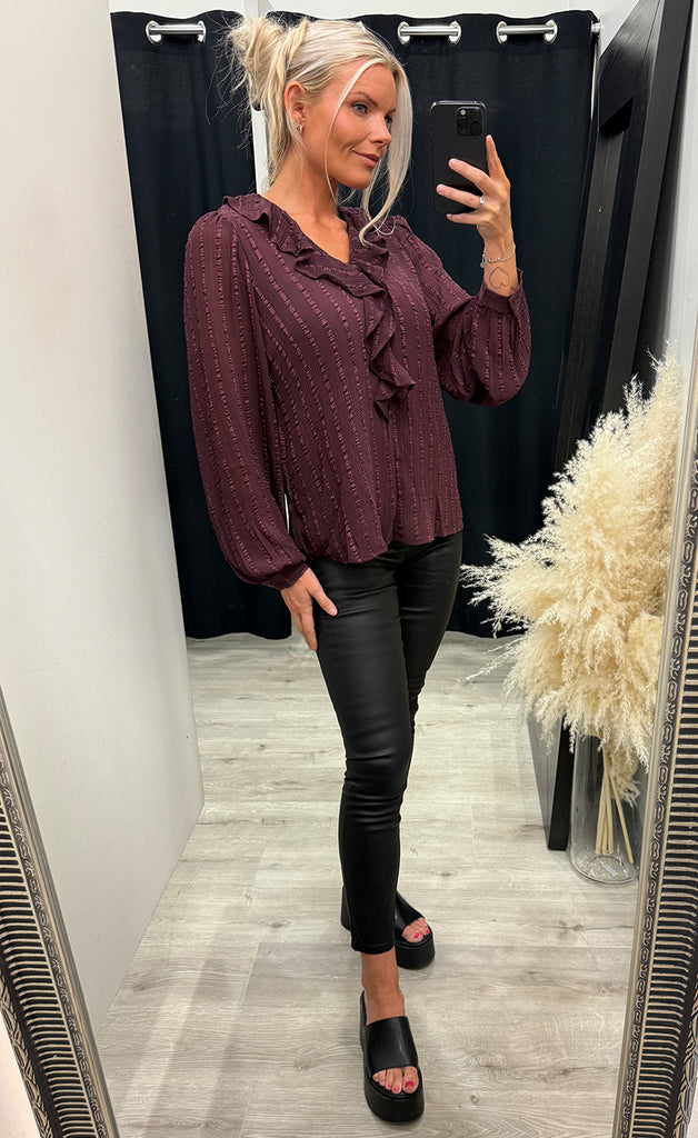 Ótrúlega falleg blússa frá danska merkinu b.young. Blússan er úr léttu efni, með flottu pífu detail að framan og fóðruð. -Módel notar stærð 36/38 og er 168 cm á hæð og er í stærð 36