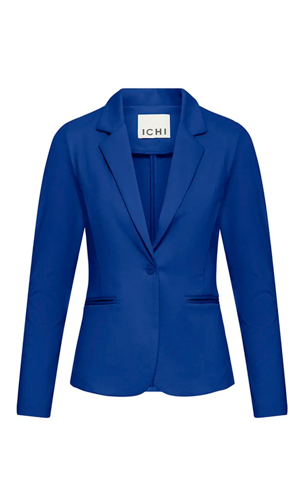 Ótrúlega flottur blazer jakki frá danska merkinu ICHI. Jakkinn er úr mjúku og teygjanlegu prjónajersey efni. -Módel notar stærð 36/38 og er 168 cm á hæð og er í stærð S