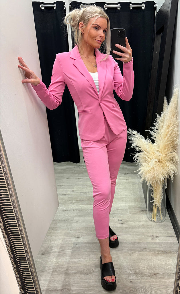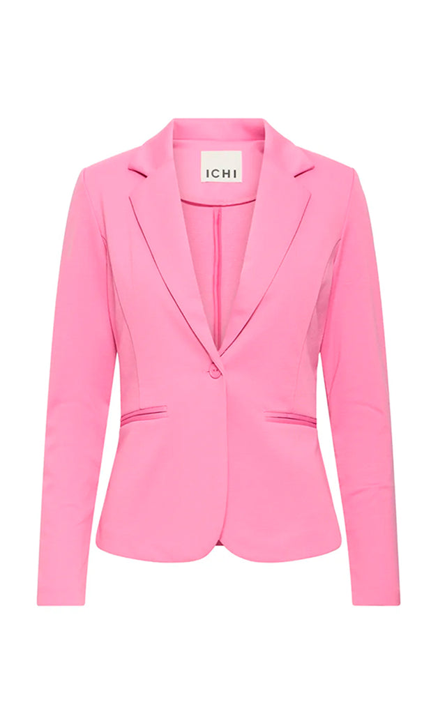 Ótrúlega flottur blazer jakki frá danska merkinu ICHI. Jakkinn er úr mjúku og teygjanlegu prjónajersey efni. -Módel notar stærð 36/38 og er 168 cm á hæð og er í stærð S