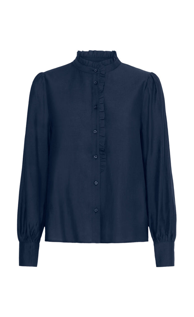 Ótrúlega falleg blússa frá danska merkinu ICHI. Blússan er úr léttu efni, með flottu pífu detail að framan og hneppt niður. -Módel notar stærð 36/38 og er 168 cm á hæð og er í stærð 36