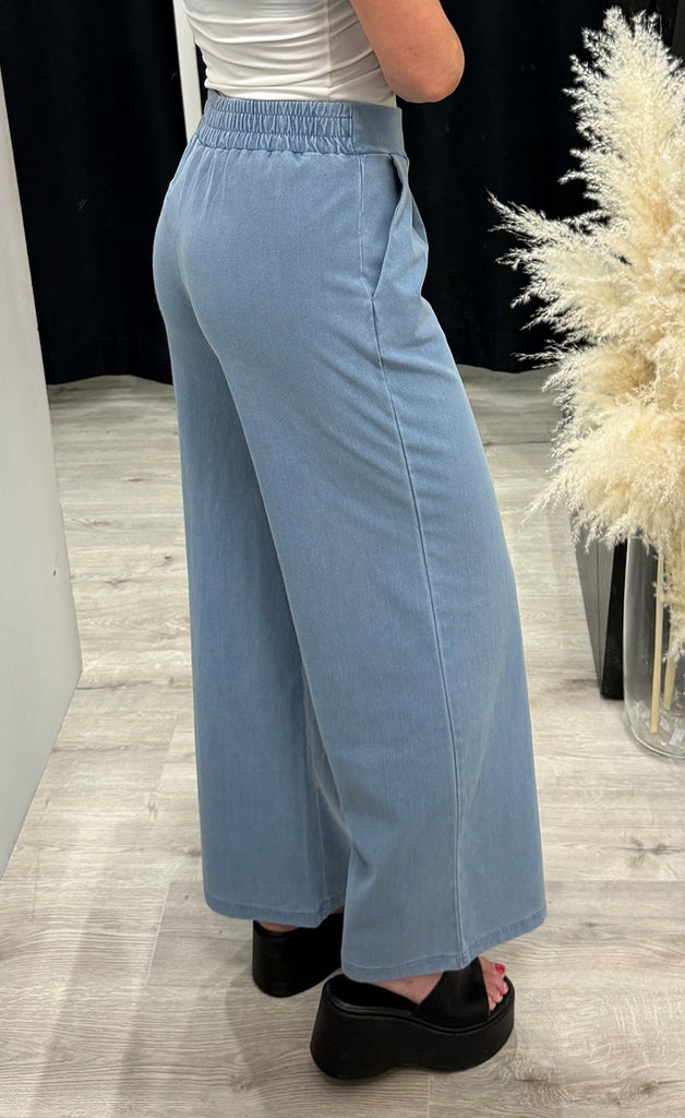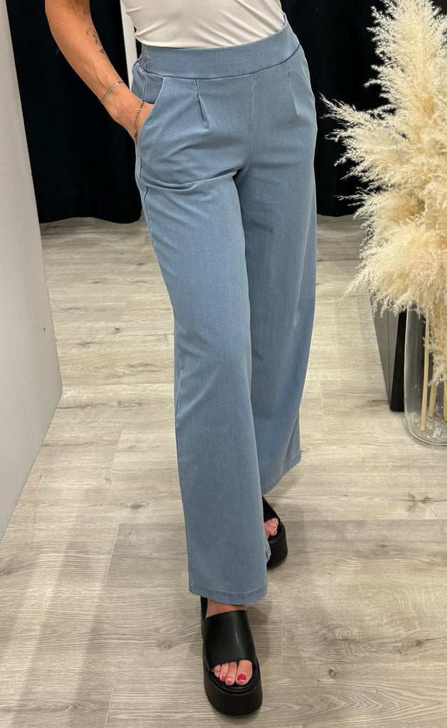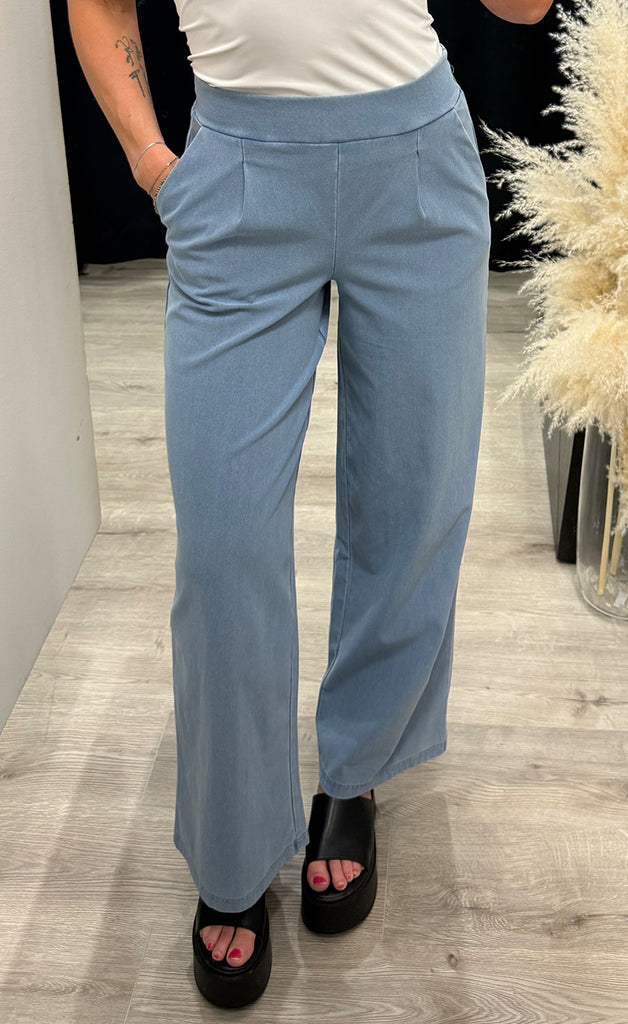 Ótrúlega flottar buxur frá danska merkinu ICHI. Buxurnar eru úr mjúku og teygjanlegu efni, með teygju í strenginn og víðar niður. -Módel notar stærð 36/38 og er 168 cm á hæð og er í stærð S