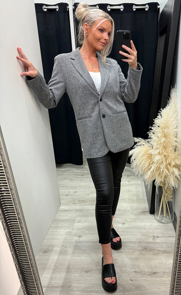 Kate jacquard oversize blazer - black/white herringbone