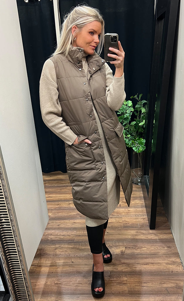 Ótrúlega flott vesti frá danska merkinu Moss Copenhagen. Vestið er úr léttu og flottu efni, með smellum, vösum og klauf í hliðum. -Módel notar stærð 36/38 og er í stærð XS/S -Rúmar stærðir