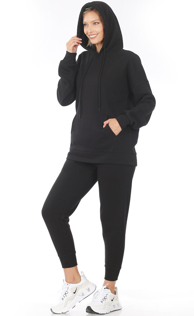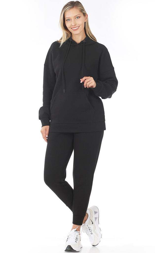 Hettupeysa með vösum og kósýbuxur í stíl - úr mjúku teygjanlegu efni.