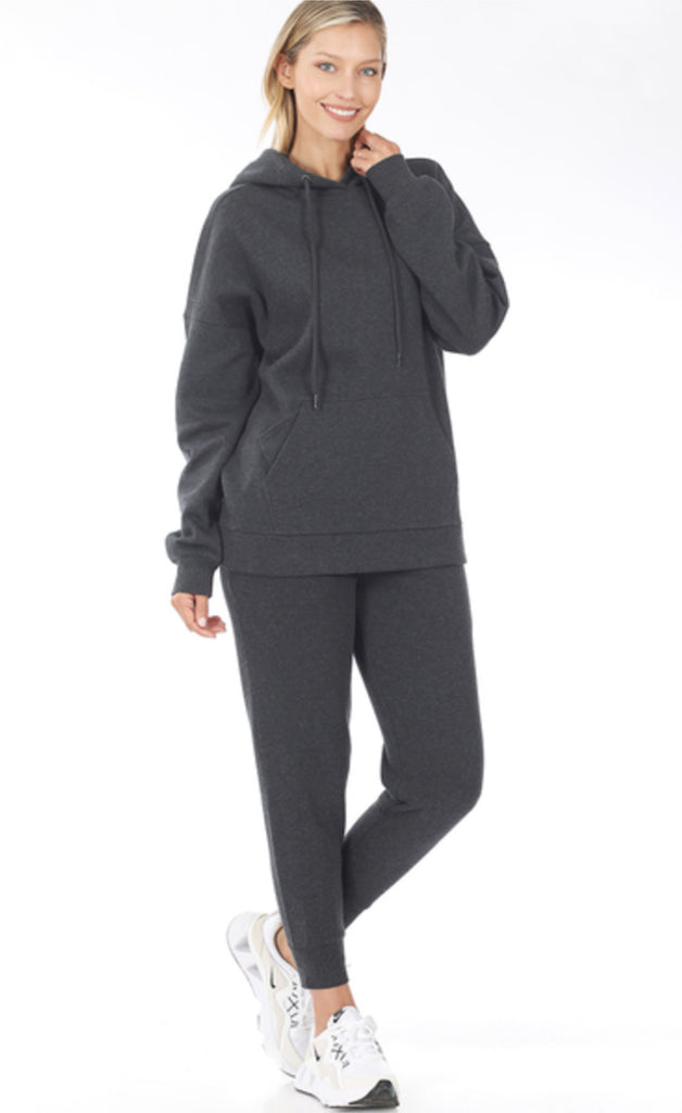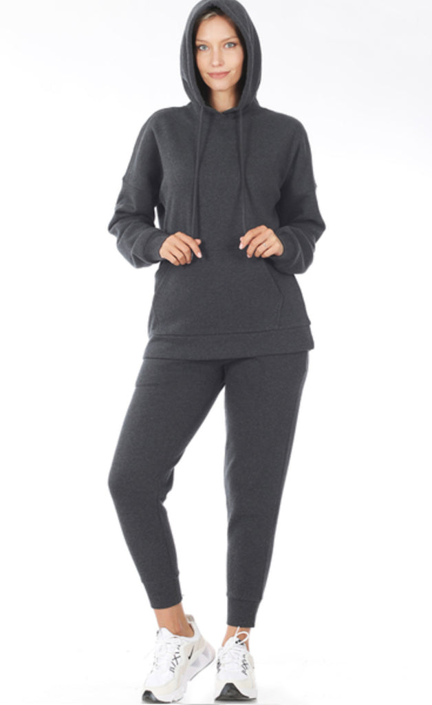 Hettupeysa með vösum og kósýbuxur í stíl - úr mjúku teygjanlegu efni.