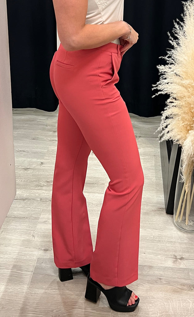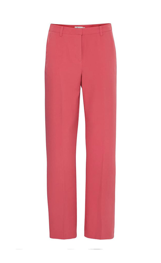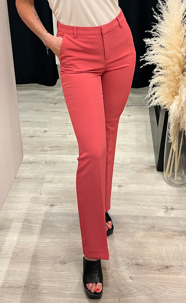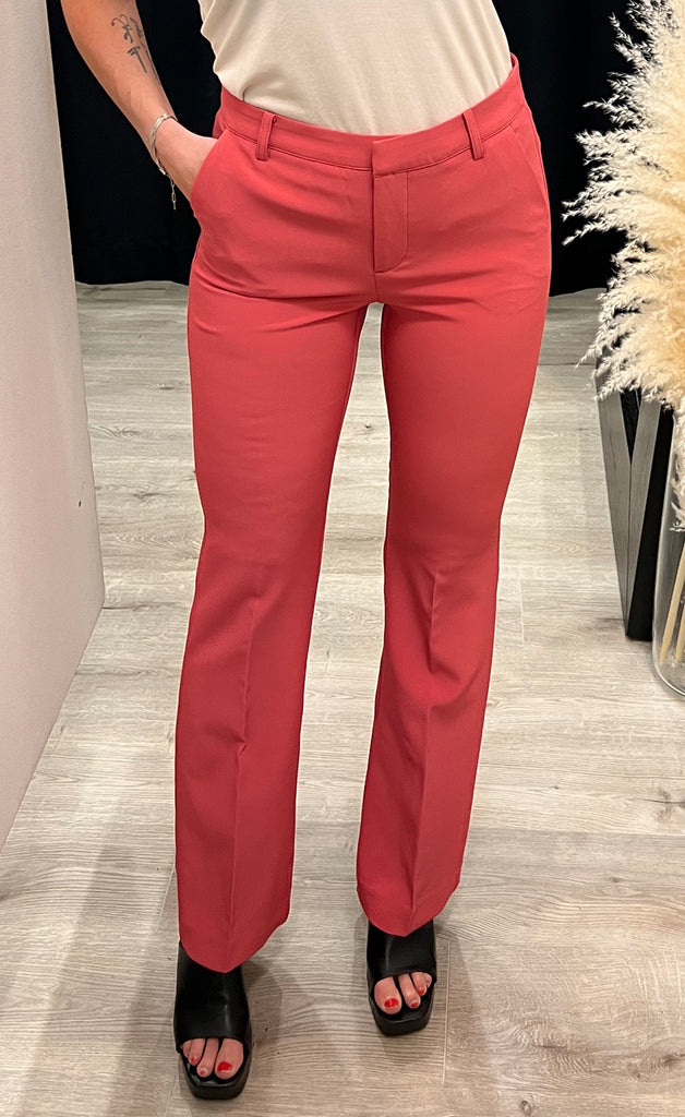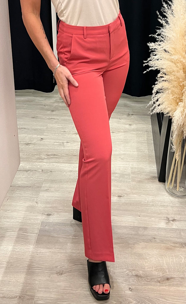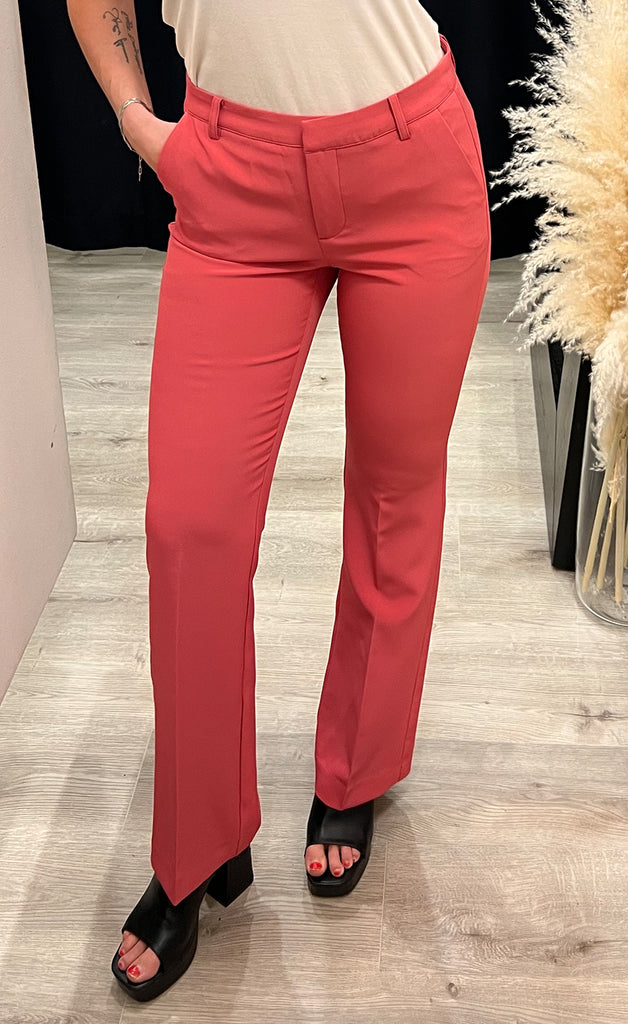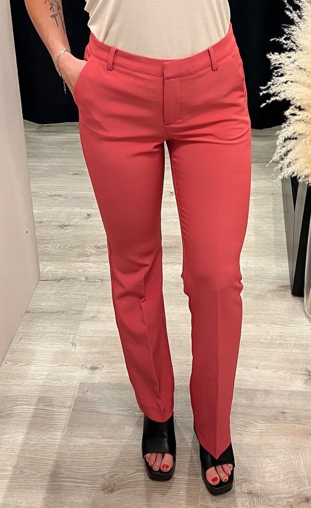 Geggjaðar buxur frá danska merkinu ICHI. Buxurnar eru úr léttu og flottu efni og beinar niður. -Módel notar stærð 36/38 og er 168 cm á hæð og er í stærð 36