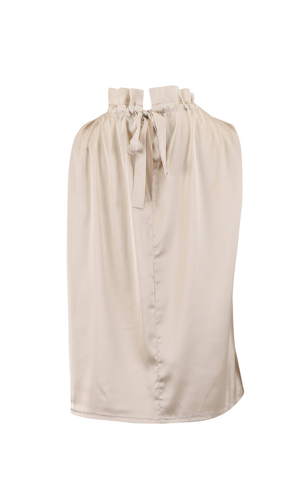 Toppurinn er úr flottu satín efni, með silfur skraut steinum og bundinn aftan við háls.
