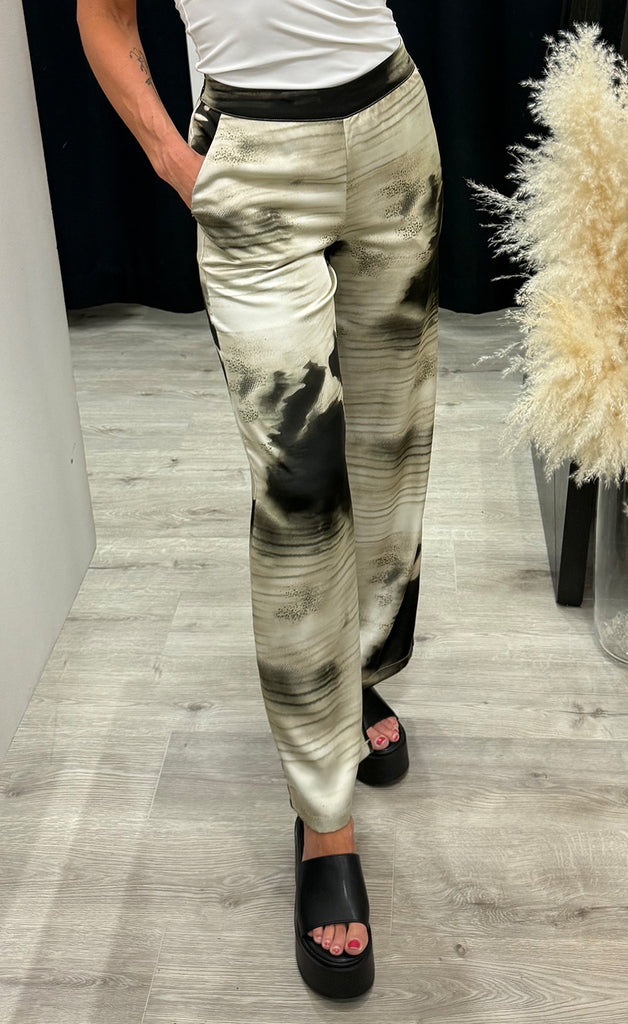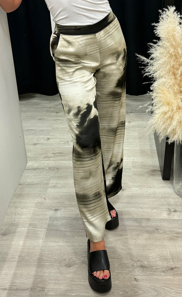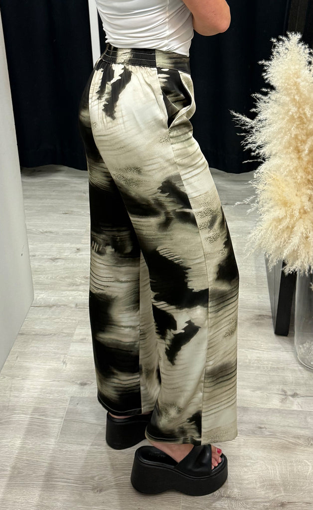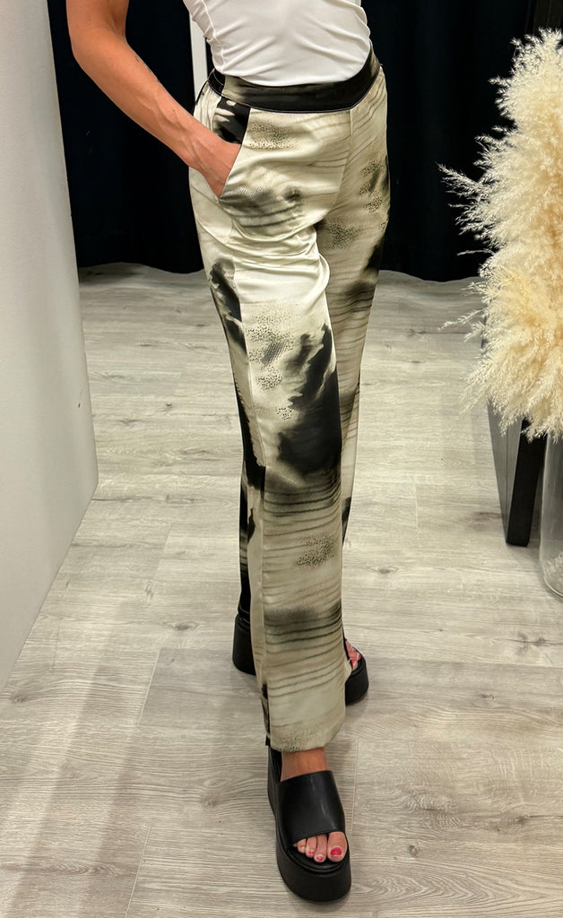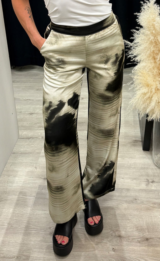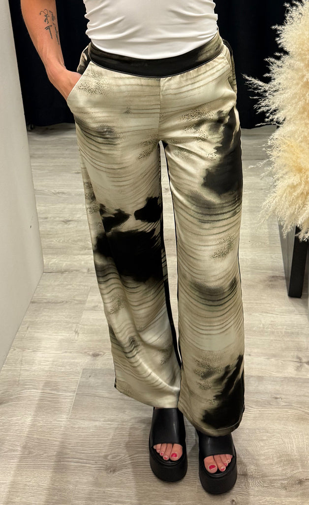 Ótrúlega flottar buxur frá danska merkinu Love&Divine. Buxurnar eru úr flottu satín efni, með vösum og með teygju í strenginn. -Módel notar stærð 36/38 og er 168 cm á hæð og er í stærð XS