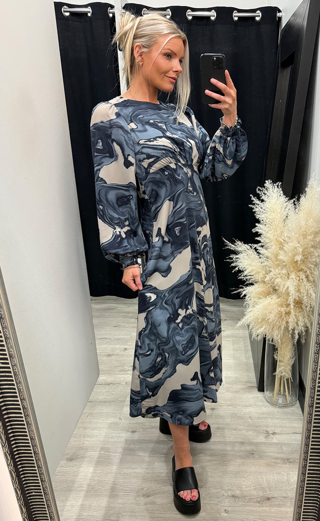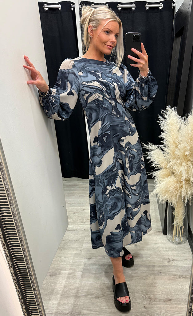Ótrúlega fallegur kjóll frá danska merkinu Love&Divine. Kjóllinn er tekinn sama undir brjóst, með víðu pilsi og renndur í bakið. -Módel notar stærð 36/38 og er 168 cm á hæð og er í stærð XS