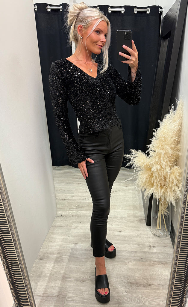 Ótrúlega flottur pallíettu bolur frá danska merkinu Noella.-Módel notar stærð 36/38 og er 168 cm á hæð og er í stærð XSEfni: 100% polyester