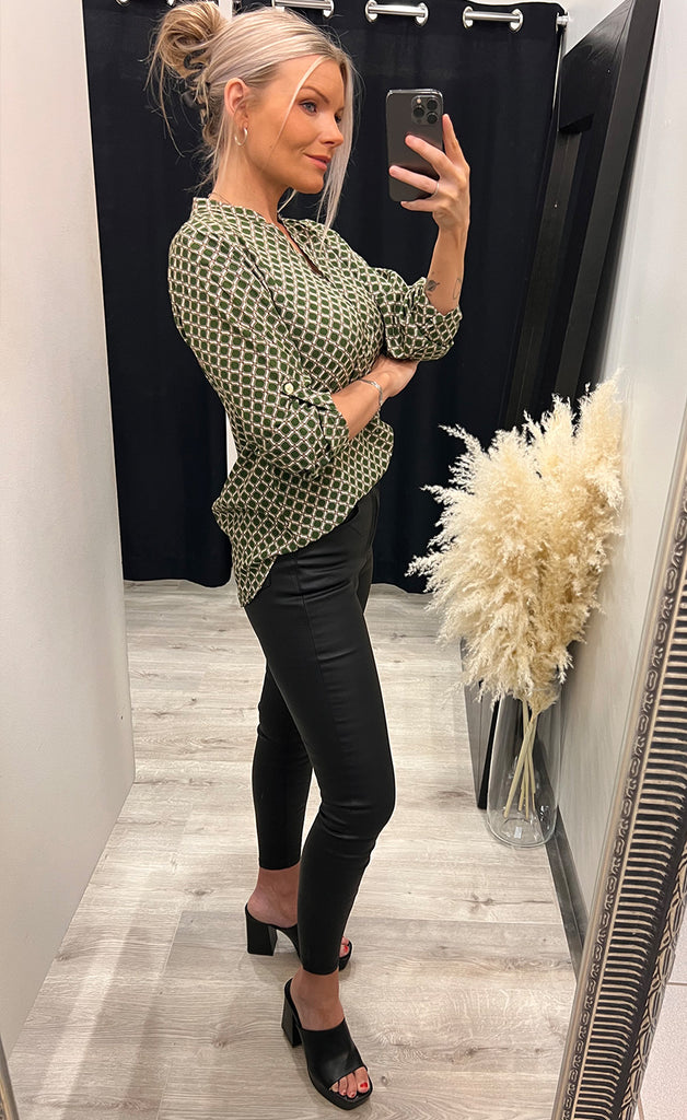 Ótrúlega falleg blússa frá danska merkinu Fransa. Blússan er úr léttu efni og hneppt að ofan. -Módel notar stærð 36/38 og er 168 cm á hæð og er í stærð S