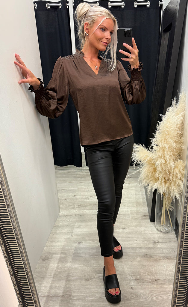 Moe satin blouse - brown