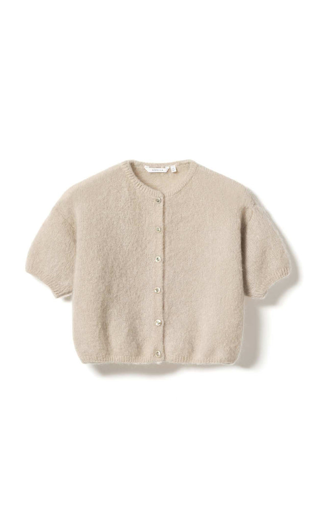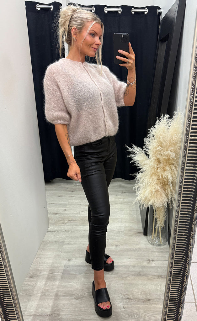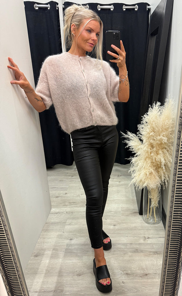 Ótrúlega falleg mohair peysa frá danska merkinu Noella. Peysan er hneppt niður og með stuttum ermum. -Módel notar stærð 36/38 og er 168 cm á hæð og er í stærð XS/S
