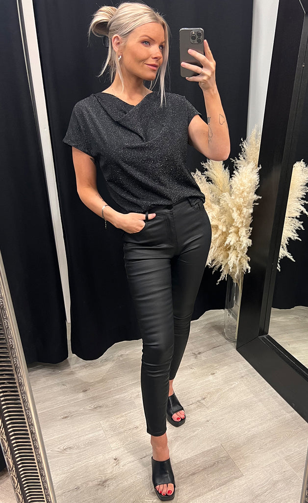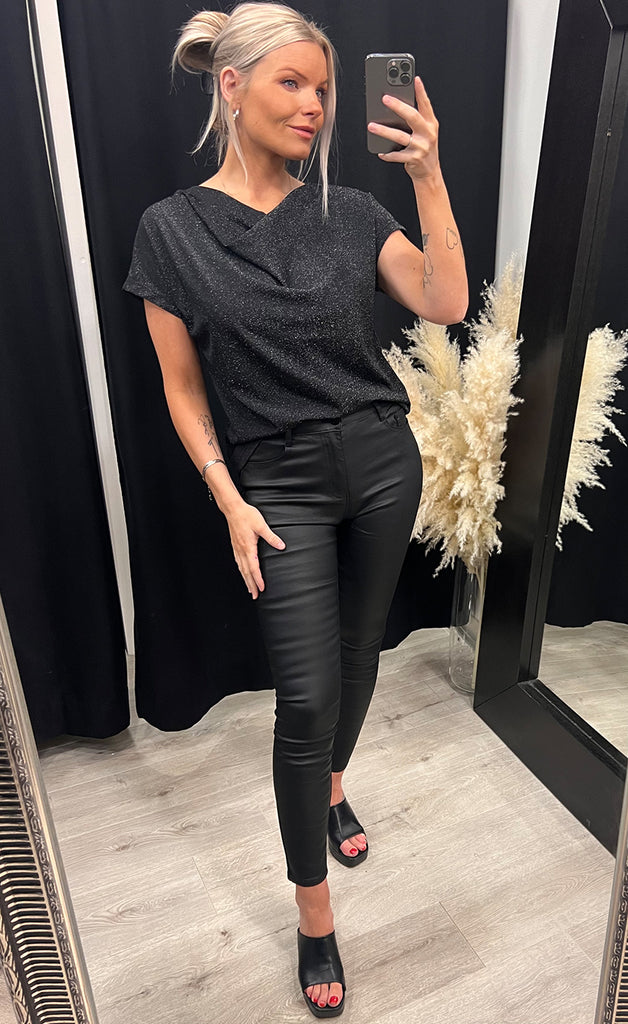 Bolurinn er úr teygjanlegu efni, með lausu hálsmáli og með silfur lurex þræði.