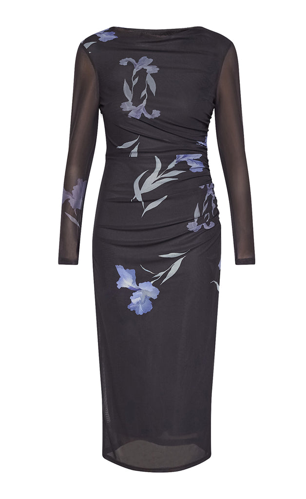 Kjóllinn er úr teygjanlegu mesh efni og fóðraður.
