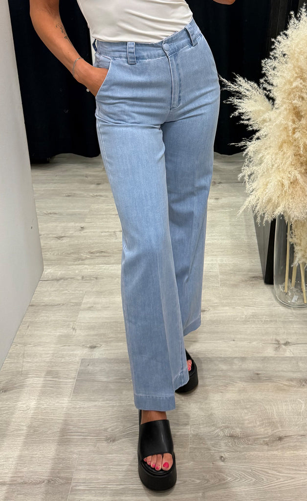 Ótrúlega flottar gallabuxur frá danska merkinu Nümph. Buxurnar eru úr mjúku og teygjanlegu efni og víðar niður. -Módel notar stærð 36/38 og er 168 cm á hæð og er í stærð 34