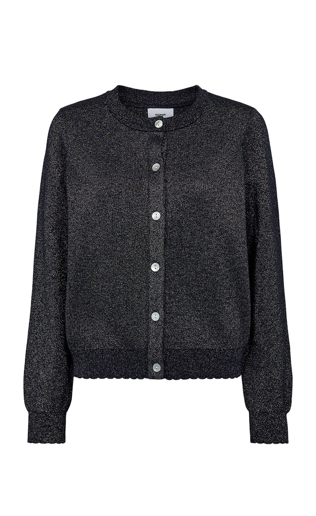 Peysan er úr mjúku og teygjanlegu efni, hneppt niður og með fallegum lurex glansþræði.