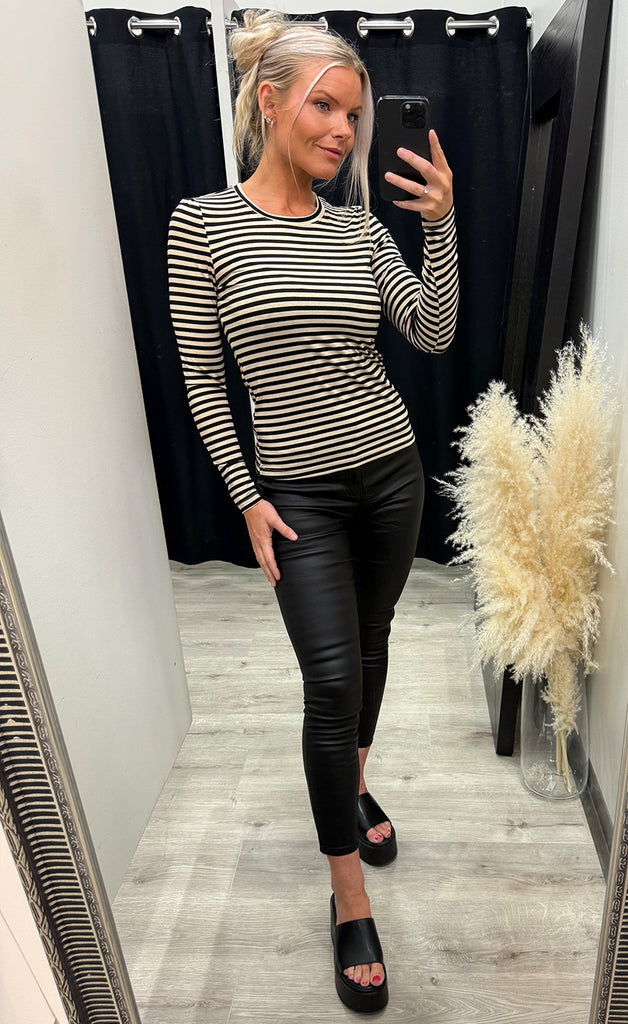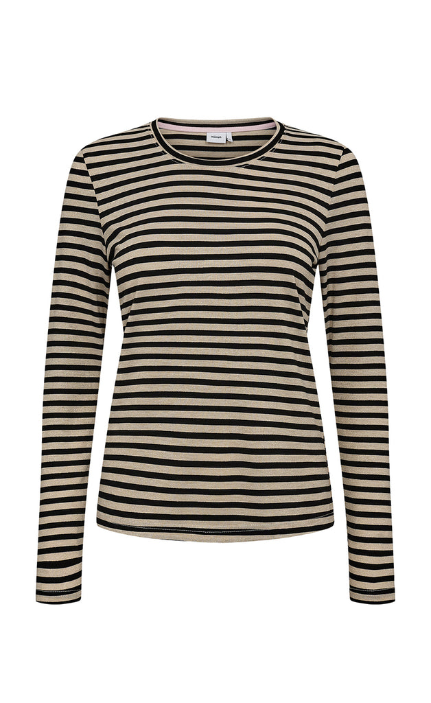Ótrúlega flottur bolur frá danska merkinu Nümph.Bolurinn er úr mjúku og teygjanlegu efni og með gylltum lurex glansþræði.-Módel notar stærð 36/38 og er 168 cm á hæð og er í stærð XSEfni: 62% viscose, 21% polyester, 11% metallic yarn og 6% elastane