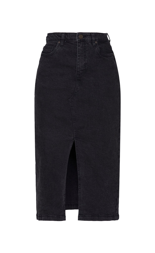 Ótrúlega flott gallapils frá danska merkinu Sisters Point. Pilsið er úr teygjanlegu efni og með klauf að framan. -Módel notar stærð 36/38 og er í stærð XS
