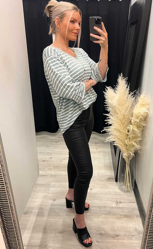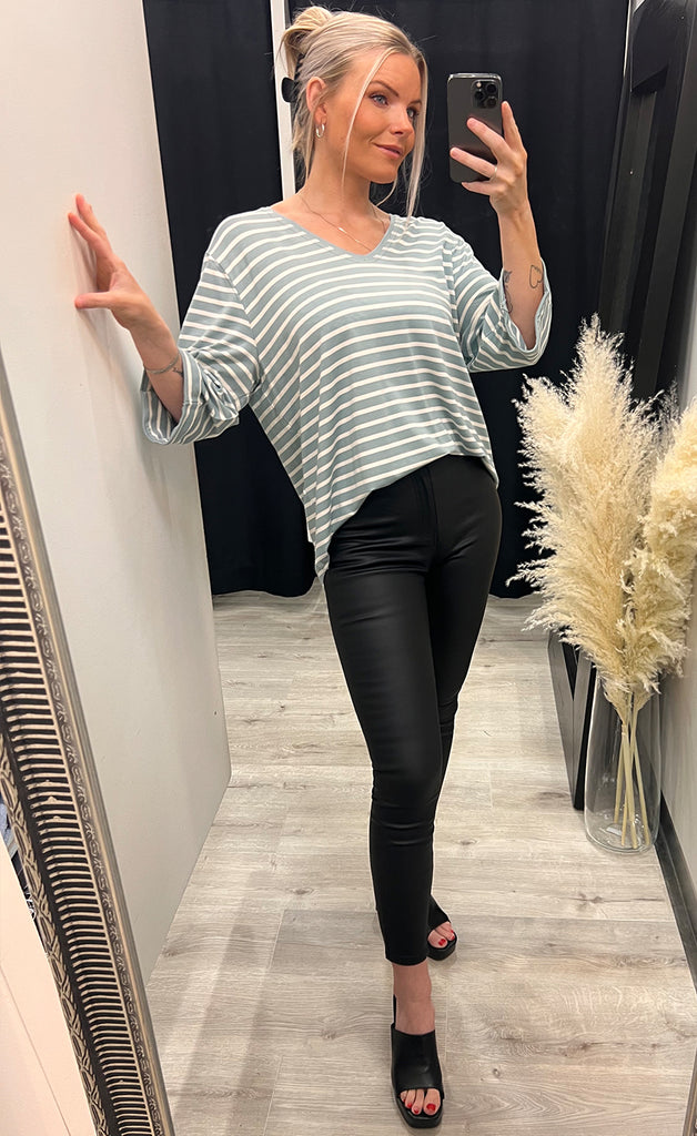 Bolurinn er með v-hálsmáli og úr mjúku og teygjanlegu efni.