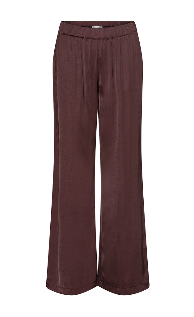 Buxurnar eru úr satín efni, með teygju í streng og beinar niður.