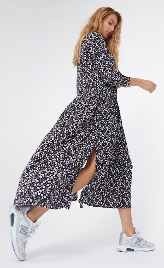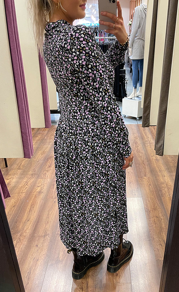 -Módel er 170 cm og er í stærð M í kjólnum