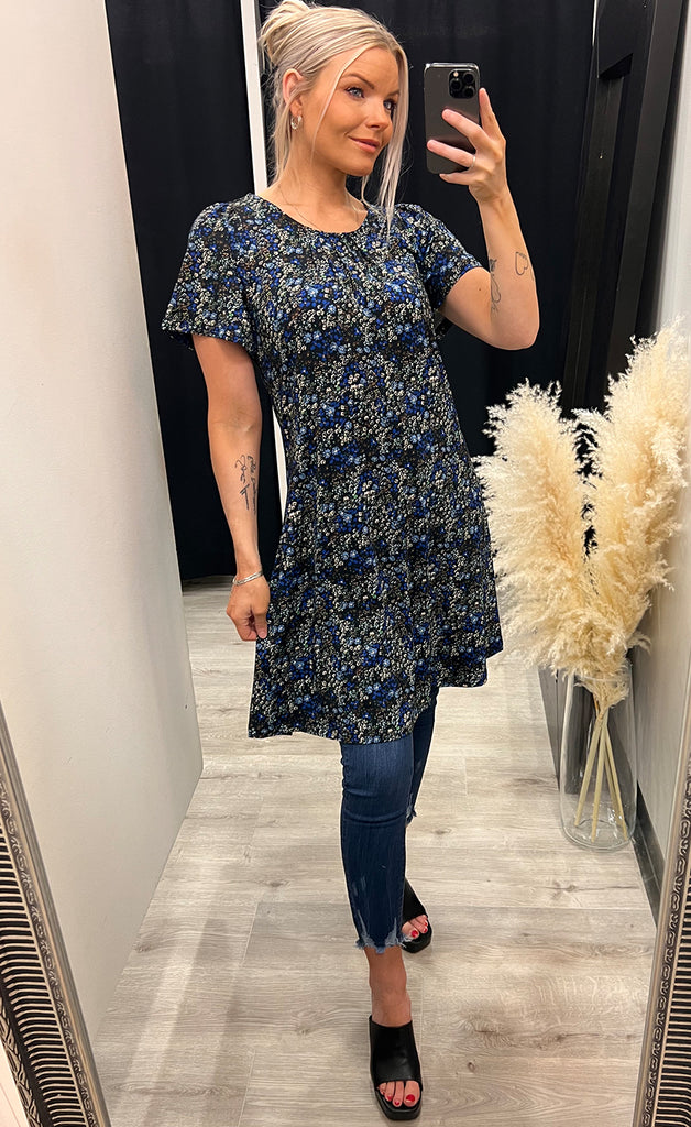 Kjóllinn er úr mjúku og teygjanlegu efni.