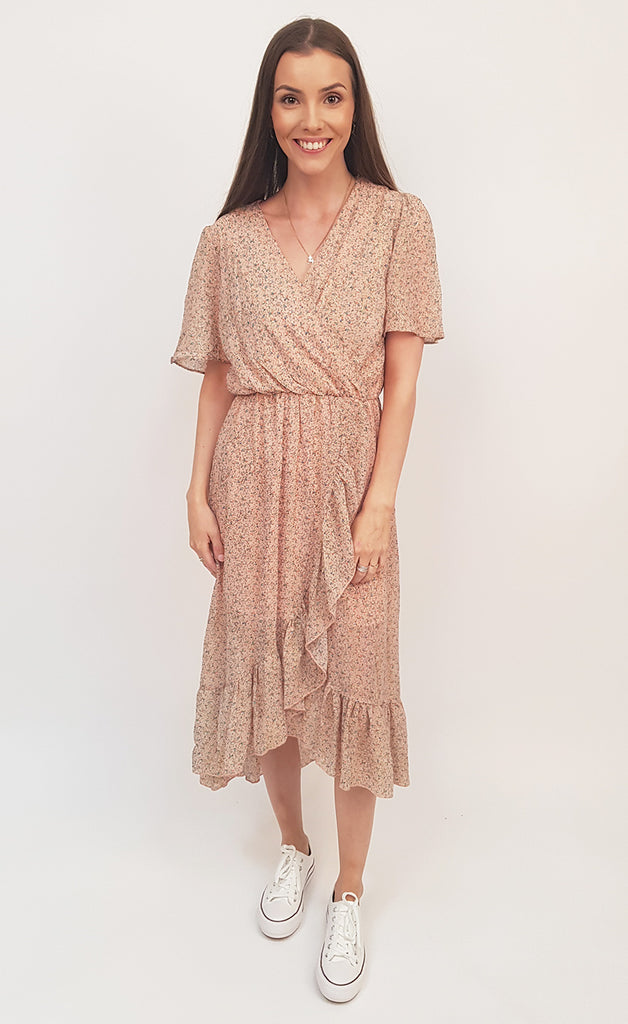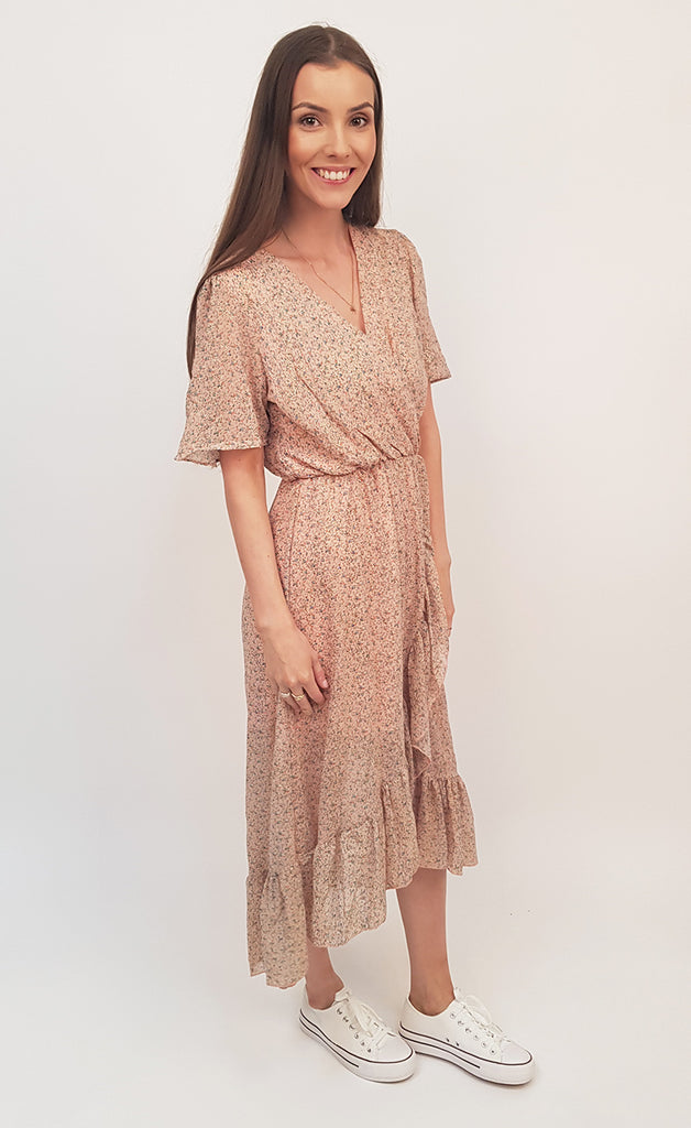 Ekta flottur sumarkjóll úr siffoni V-hálsmáli