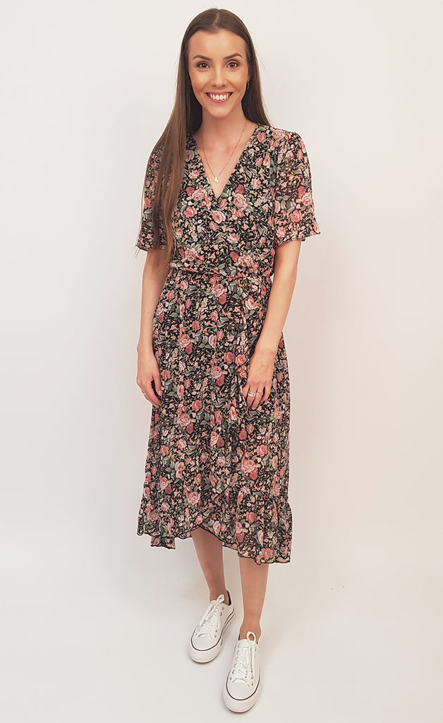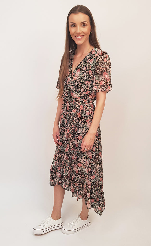 Ekta flottur sumarkjóll úr siffoni V-hálsmáli